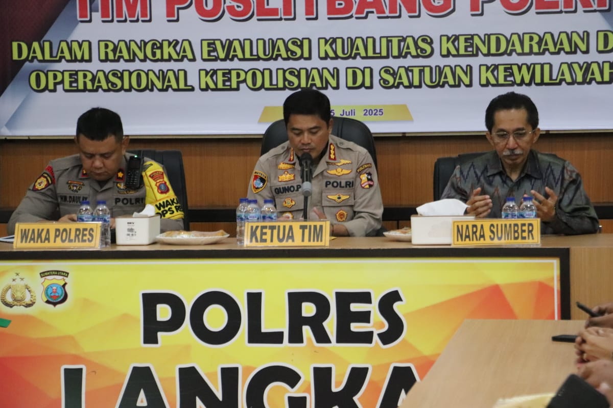 Langkat, Sumut | unspirasipublik.id – Tim Pusat Penelitian dan Pengembangan Kepolisian Negara Republik Indonesia (Puslitbang Polri) melaksanakan kunjungan kerja ke Polres Langkat dalam rangka penelitian bertajuk “Evaluasi Kualitas Kendaraan Dinas Operasional Kepolisian di Satuan Kewilayahan, Selasa (15/07/2025).