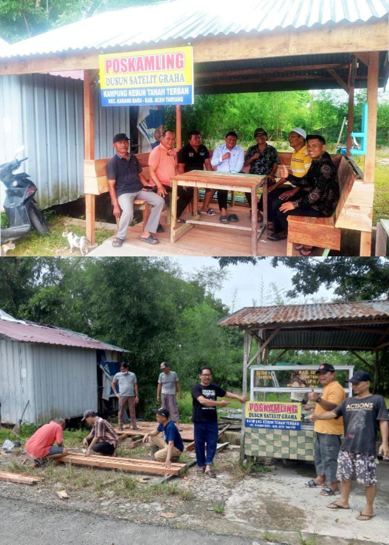 Aceh Tamiang || Inspirasipublik.id — Membangun semangat untuk rasa kebersamaan dan kepedulian terhadap keamanan lingkungan kampung, ditunjukkan oleh warga Desa Kebun Tanah Terban, Kecamatan Karang Baru, Kabupaten Aceh Tamiang, melalui kegiatan pembangunan pos kamling secara gotong royong, Minggu (13-07-2025)