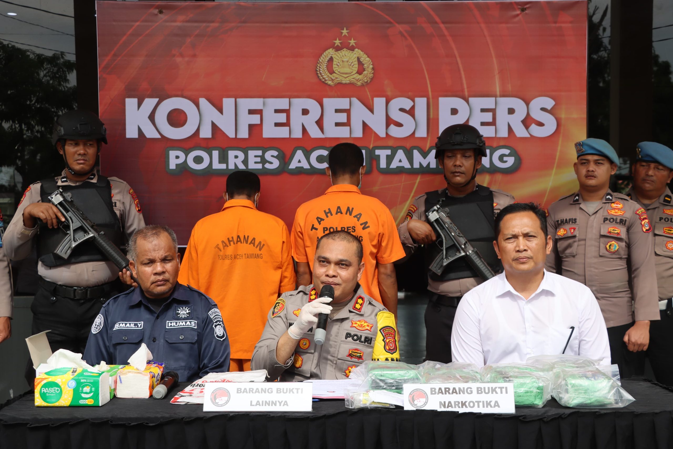 Dalam keterangannya kepada awak media, AKBP Mulyadi menjelaskan bahwa pengungkapan kasus ini merupakan hasil dari laporan masyarakat yang merasa curiga terhadap dua pria tidak dikenal yang melintas di kawasan Desa Sungai Kuruk, Kecamatan Seruway. Berbekal informasi tersebut, personel Satresnarkoba melakukan penyelidikan dan berhasil menghentikan satu unit sepeda motor yang dikendarai oleh dua pelaku.