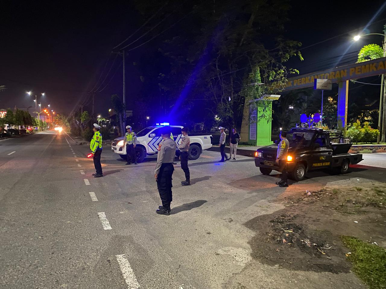 Personel Polres Aceh Tamiang melaksanakan patroli rutin di sejumlah titik rawan di wilayah Kabupaten Aceh Tamiang guna mengantisipasi aksi balap liar dan Guantibmas.