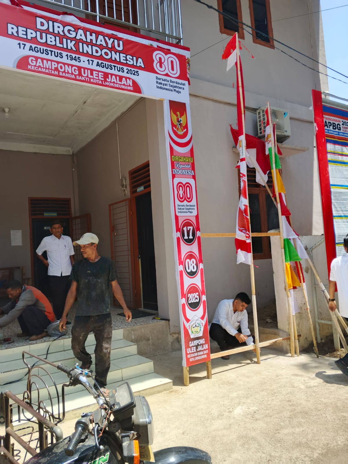 Aparatur Desa Dan Warga Ulee Jalan Hias Kantor Keuchik Untuk Menyambut HUT RI ke-80, Kapolsek Beri Apresiasi