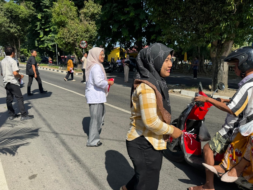 Sebanyak 500 bendera Merah Putih dibagikan kepada para pengendara roda dua dan roda empat. Respons masyarakat sangat positif. Banyak pengendara secara sukarela menghentikan kendaraan mereka untuk menerima bendera yang dibagikan dengan ramah dan penuh semangat oleh para petugas.