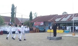 Suratman, memimpin jalannya upacara dan diikuti oleh hadirin dari unsur Forkopimcam Kejuruan Muda, Mukim, Staff PKS PT. Sisirau, Dewan guru, Serta pelajar SD, SMP dan santri Dayah Al-Hidayah.