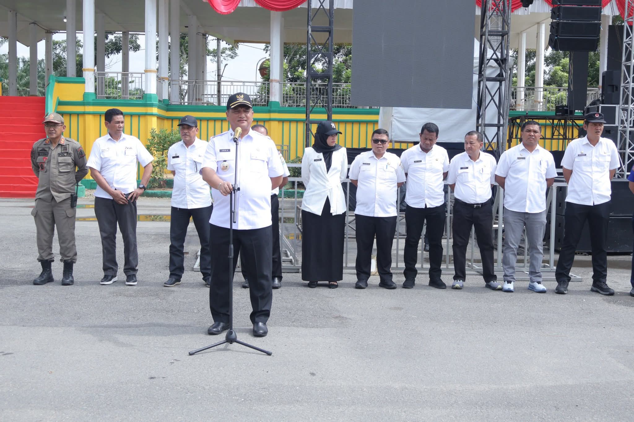 Dalam Apel tersebut, Bupati Armia menyampaikan beberapa hal penting terkait pengamanan dan penertiban dalam mensukseskan acara gebyar kemerdekaan dan pameran pembangunan di Aceh Tamiang.