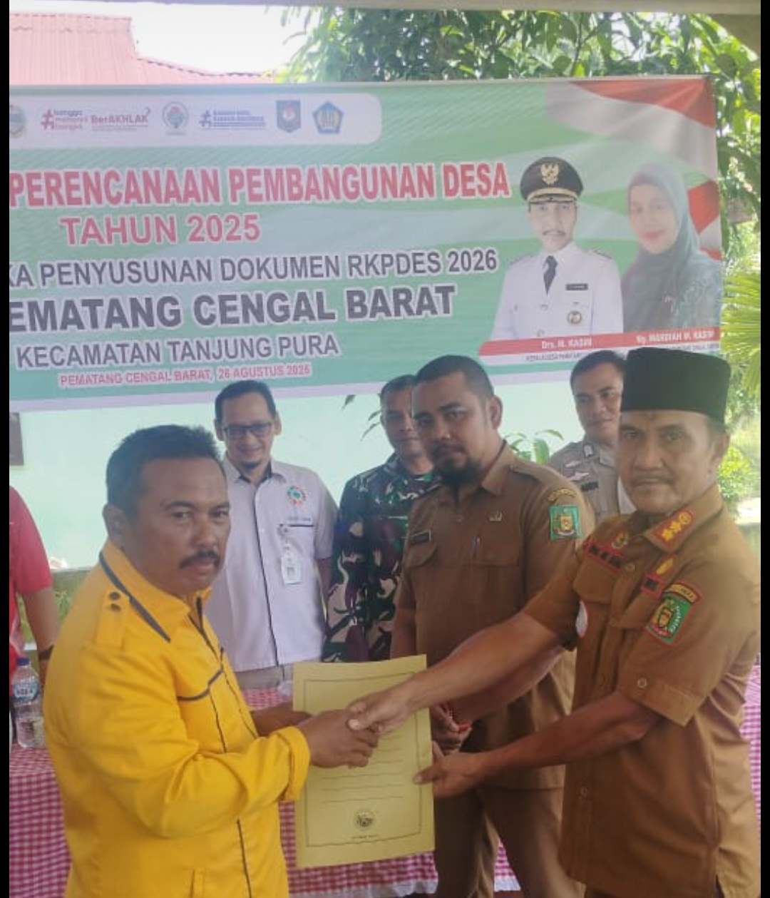 Giat musyawarah pemerintahan dan unsur terkait dalam desa itu diselenggarakan oleh aparat Desa Pematang Cengal Barat Kecamatan Tanjung Pura, Kabupaten Langkat, Sumatera Utara (Sumut), Selasa, 26 Agustus 2025.