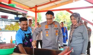 Dalam kesempatan tersebut, Kapolres bersama Ketua Bhayangkari tidak hanya menyapa langsung pemilik warung, tetapi juga turut menyaksikan proses memasak mie suree, bahkan ikut mencoba mengolah hidangan khas tersebut.