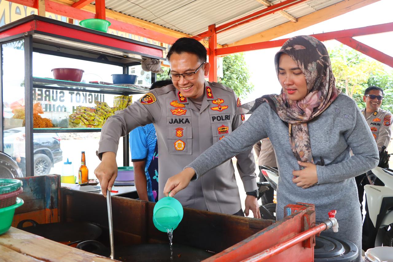 Dalam kesempatan tersebut, Kapolres bersama Ketua Bhayangkari tidak hanya menyapa langsung pemilik warung, tetapi juga turut menyaksikan proses memasak mie suree, bahkan ikut mencoba mengolah hidangan khas tersebut.