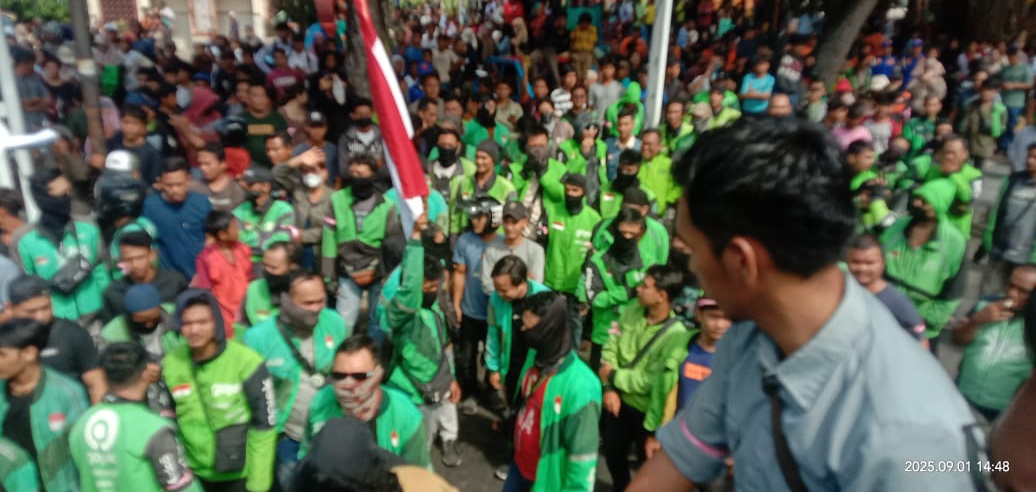 Binjai, Sumut | inspirasipublik.id – Ratusan pengemudi ojek online (ojol) dan mahasiswa melakukan demo di depan gedung DPRD Kota Binjai, Sumatera Utara Jalan Veteran, Kelurahan Tangsi, Kecamatan Binjai Kota, Senin (1/9/2025) pukul 14:25 WIB berakhir pujul 18:00 WIB.
