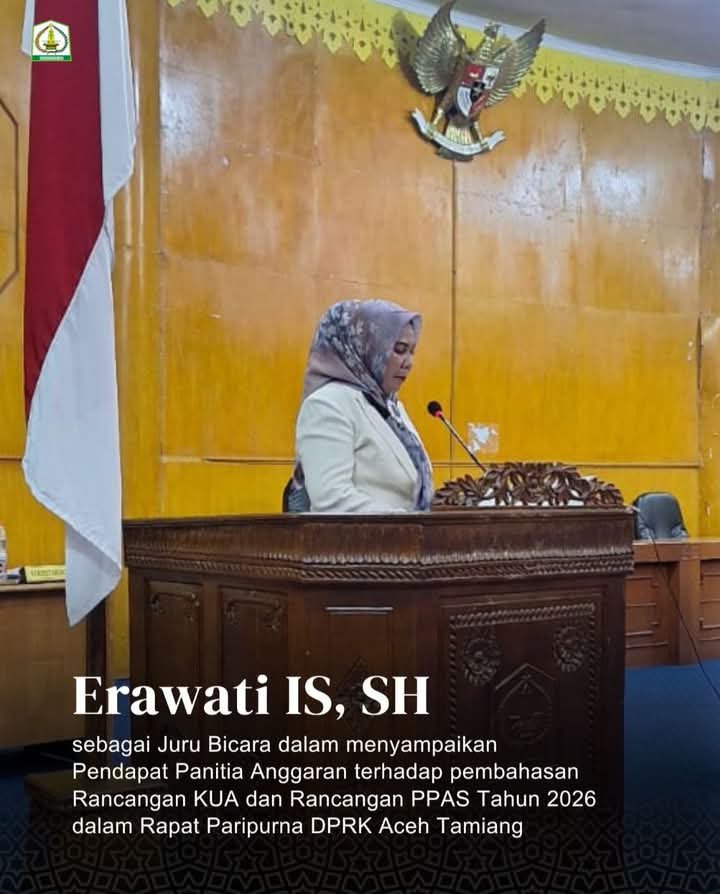 Aceh Tamiang || Inspirasipublik.id — Panitia Anggaran DPRK Aceh Tamiang menyampaikan pendapatnya terhadap hasil pembahasan Rancangan Kebijakan Umum APBK (KUA) dan Rancangan Prioritas dan Plafon Anggaran Sementara (PPAS) Tahun Anggaran 2026 dalam Rapat Paripurna, Senin(8/8/2025).
