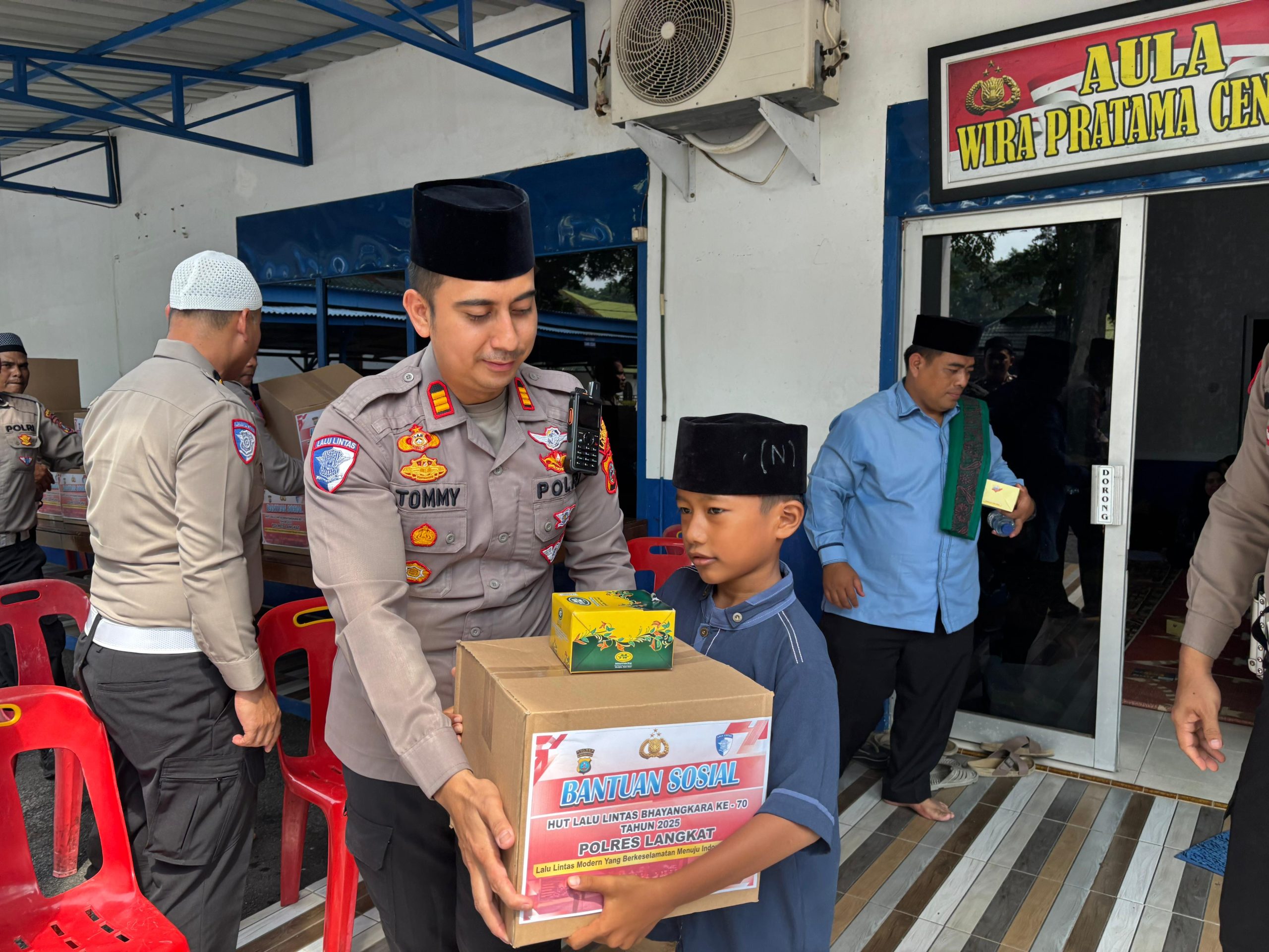 Kegiatan dipimpin Kasat Lantas Polres Langkat AKP Mhd.Tommy Franata,S.T.K.,S.I.K.,MH.,MT., dan dihadiri, Personil polres Langkat, tokoh agama, Pengemudi betor, Supir angkot,Petugas kebersihan, Anak Yatim piatu, hingga komunitas driver jasa online Kabupaten Langkat.
