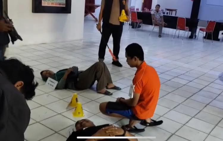 Dalam rekonstruksi tersebut, tersangka berinisial Apri (22) diperagakan kembali aksinya melakukan tindak pidana p3mbunuh4n, p3ngan14y4an berat, serta p3m3rk0s4an terhadap dua korban.